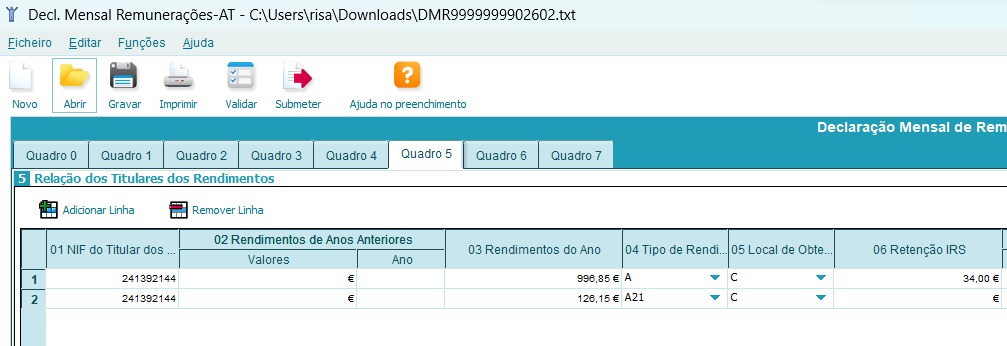 - Sub. de Refeição Janeiro: (6,15-6,00)*21 = -3,15€