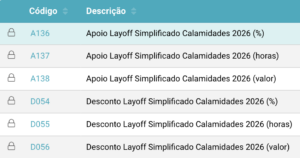 Na sequência das medidas excecionais criadas para apoiar empresas afetadas pelas calamidades de 2026, o TOConline passa a disponibilizar novos códigos de abono específicos para o processamento salarial em regime de layoff simplificado associado a esta situação.